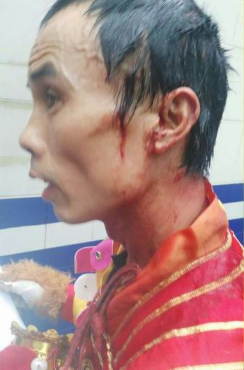 當日下午,“猴王”打架一事就是因為爭地盤而起。其中一名老“猴王”被一名年輕“猴王”用金箍棒打傷了左側(cè)頭部,鮮血直流。最后,經(jīng)過警方的協(xié)調(diào),雙方達成一致。打人者賠償被打者1500元醫(yī)藥費。(圖片由警方提供)