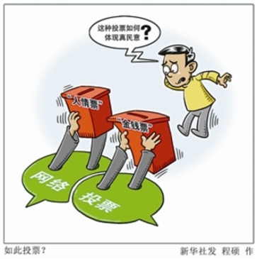 從紅遍大江南北的超女、快男開始,各種評選活動(dòng)日益增多,最萌寶貝、最美司機(jī)、最美景點(diǎn)等等,你方唱罷我登場,好不熱鬧。投票手段也不斷演進(jìn),手機(jī)短信、網(wǎng)絡(luò)海選、朋友圈投票等,花樣翻新、不一而足。投票方式雖與時(shí)俱進(jìn),衡量投票結(jié)果的標(biāo)準(zhǔn)卻未變,票數(shù)多少固化為讓各方“信服”的指標(biāo),如何獲得票數(shù)則一概不論。