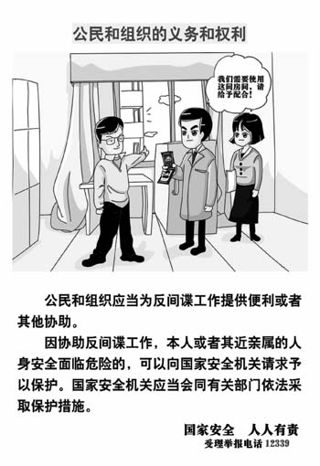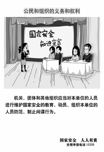 4月15日是《國(guó)家安全法》頒布實(shí)施以來(lái)的第二個(gè)“全民國(guó)家安全教育日”。為進(jìn)一步提高全民國(guó)家安全意識(shí),增強(qiáng)全民國(guó)家安全責(zé)任,努力構(gòu)建反奸防諜人民防線(xiàn)“鋼鐵長(zhǎng)城”,本報(bào)特推出國(guó)家安全教育系列宣傳內(nèi)容,希望廣大人民群眾自覺(jué)踐行法定權(quán)責(zé),不斷提升維護(hù)國(guó)家安全利益的自覺(jué)性,樹(shù)立嚴(yán)格保密意識(shí),積極支持和協(xié)助國(guó)家安全機(jī)關(guān)開(kāi)展工作,為維護(hù)國(guó)家安全和社會(huì)政治穩(wěn)定傾注熱情、貢獻(xiàn)力量。
