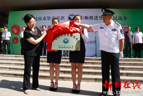 市公安局局長(zhǎng)楊梅喜、忻州師范學(xué)院院長(zhǎng)張虎芳共同為毒品預(yù)防教育基地揭牌