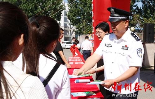 市公安局局長(zhǎng)楊梅喜向?qū)W生們發(fā)放禁毒宣傳資料