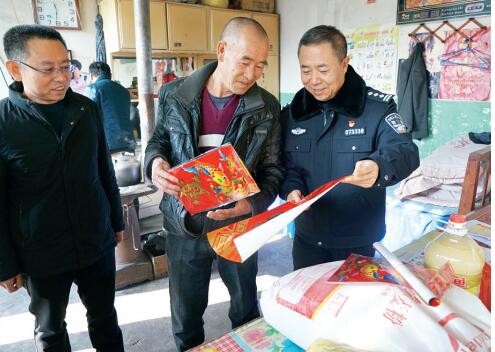 本報(bào)訊 近日,忻府區(qū)公安局黨委班子成員和民警一行104人,深入陽(yáng)坡鄉(xiāng)陽(yáng)坡村開展新春“送溫暖、獻(xiàn)愛心”慰問活動(dòng),為建檔立卡貧困戶送去了面粉、大米、食用油、對(duì)聯(lián)等慰問品。