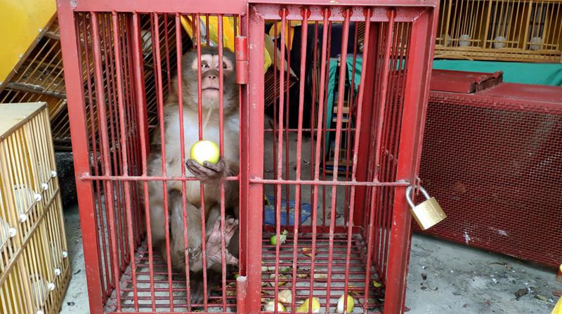 2月18日,文山州丘北縣森林公安局民警在深入轄區(qū)村寨開展野生動(dòng)物保護(hù)及疫情防控知識(shí)宣傳過程中,解救了一只猴子,涉案嫌疑人被依法立案調(diào)查。經(jīng)查,嫌疑人何某2016年2月在南盤江捕魚時(shí),發(fā)現(xiàn)湍急的江水中有一只猴子正在奮力游泳企圖上岸,看起來已經(jīng)體力不支。何某利用手中的捕魚網(wǎng)將猴子捕獲上岸后,將猴子帶回家中飼養(yǎng)至被民警查獲。