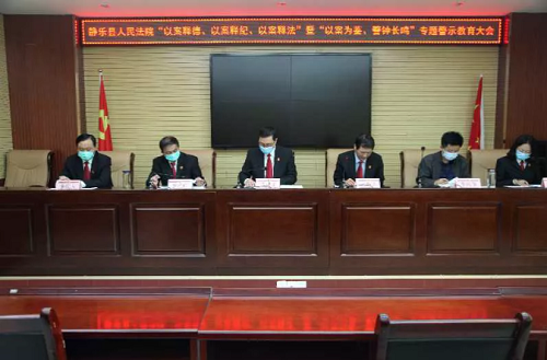 5月13日,靜樂法院召開“堅持黨對司法工作的絕對領(lǐng)導(dǎo)、堅持中國特色社會主義法治道路”專題教育,“以案釋德、以案釋紀(jì)、以案釋法”暨“以案為鑒、警鐘長鳴”警示教育動員部署會,院黨組書記、院長呂建文出席會議并講話,院黨組成員和縣紀(jì)委監(jiān)委第三派駐紀(jì)檢組組長李躍華及全體干警參加會議。院黨組成員、副院長姚亮懷主持。
