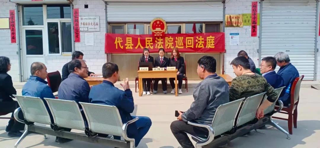 “現(xiàn)在開庭!”代縣磨坊鄉(xiāng)南家寨村村委會(huì)前,巡回法庭正在庭審,通過調(diào)解解決矛盾糾紛的同時(shí),還給群眾上了一堂生動(dòng)的法治教育公開課。