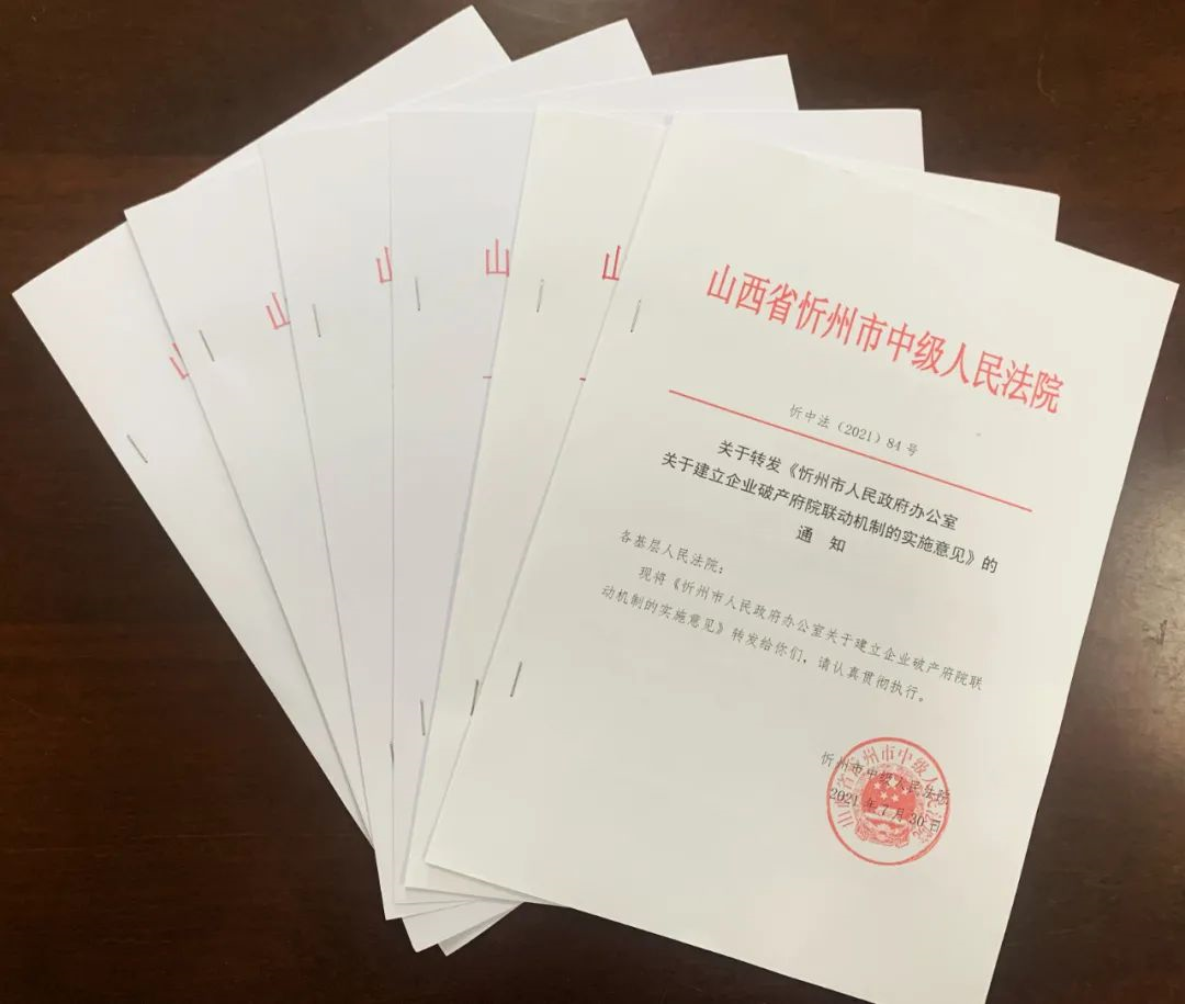 2021年7月30日,忻州市政府與忻州中院共同印發(fā)《關(guān)于建立企業(yè)破產(chǎn)府院聯(lián)動(dòng)工作機(jī)制的實(shí)施意見》。忻州正式建立企業(yè)破產(chǎn)府院聯(lián)動(dòng)工作機(jī)制,成立由市政府主要領(lǐng)導(dǎo)或受主要領(lǐng)導(dǎo)指派的分管領(lǐng)導(dǎo)和法院院長擔(dān)任聯(lián)席會(huì)議共同召集人,各成員單位分管領(lǐng)導(dǎo)為聯(lián)席會(huì)議成員,負(fù)責(zé)統(tǒng)籌安排企業(yè)破產(chǎn)府院聯(lián)動(dòng)各項(xiàng)工作。