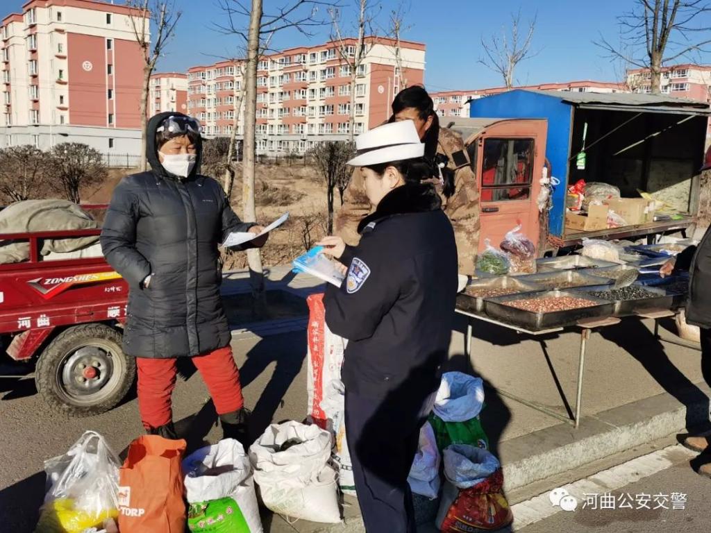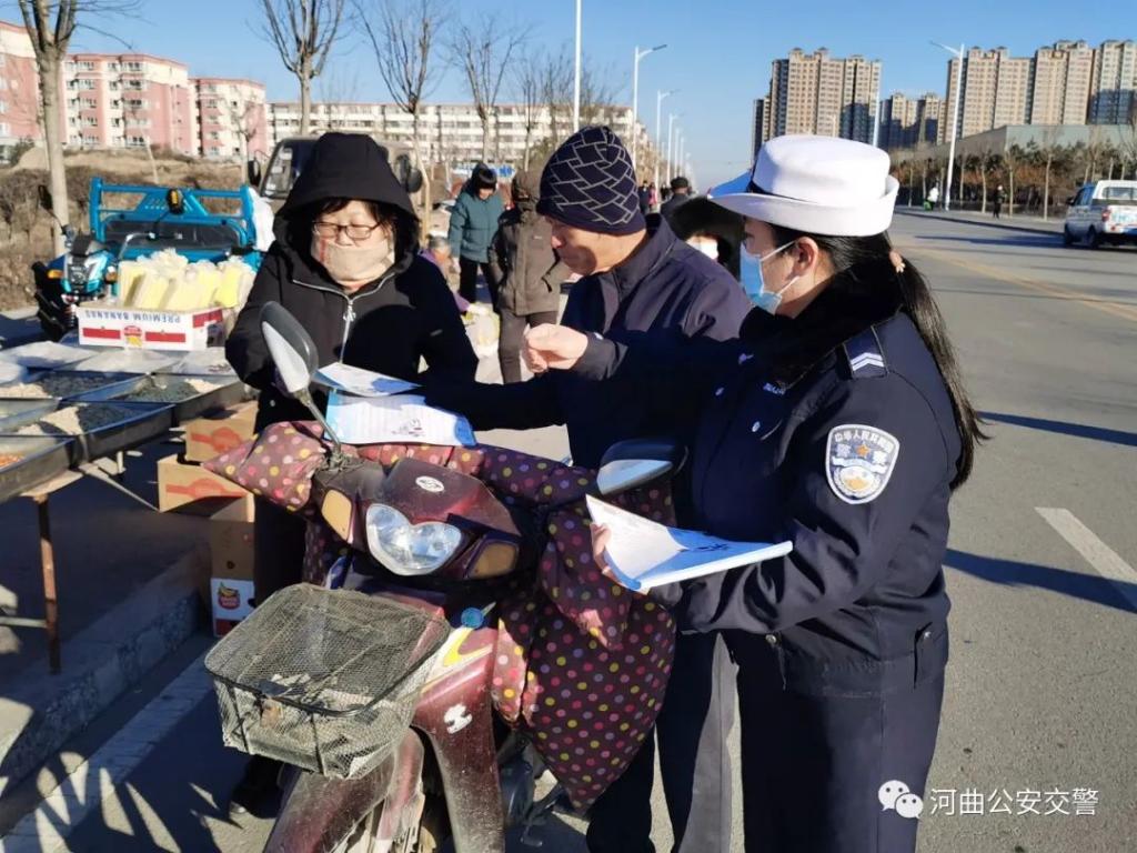 12月17日,河曲縣公安局交警大隊(duì)宣教民警走進(jìn)移民村集市,積極開展“冬季交通安全”宣傳活動。