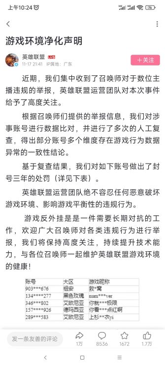 近日,英雄聯(lián)盟主播被質疑使用腳本鬧得沸沸揚揚。在經(jīng)歷網(wǎng)友錄屏鑒定、主播自證辯解后,英雄聯(lián)盟官方下場,通過技術手段多重復查,幾位大主播求錘得錘終于被封號三年,大快人心。
