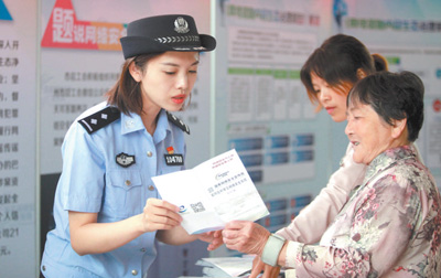 江蘇省揚(yáng)州市,民警為市民講解國(guó)家網(wǎng)絡(luò)安全知識(shí)。 孟德龍攝(影像中國(guó))