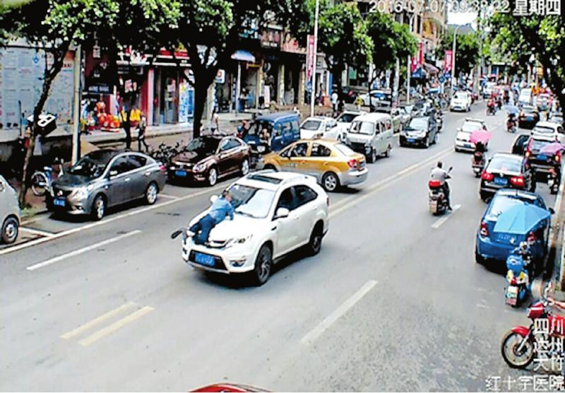 一輛白色的比亞迪轎車,載著一車乘客在市區(qū)橫沖直撞,并以時速50公里左右的速度,將一名執(zhí)法人員撞上引擎蓋,推行了300多米。緊接著,該轎車來了一個急轉彎,把執(zhí)法人員甩下地面后繼續(xù)逃跑……7月7日,電影中的“速度與激情”,在達州市大竹縣城真實上演。
