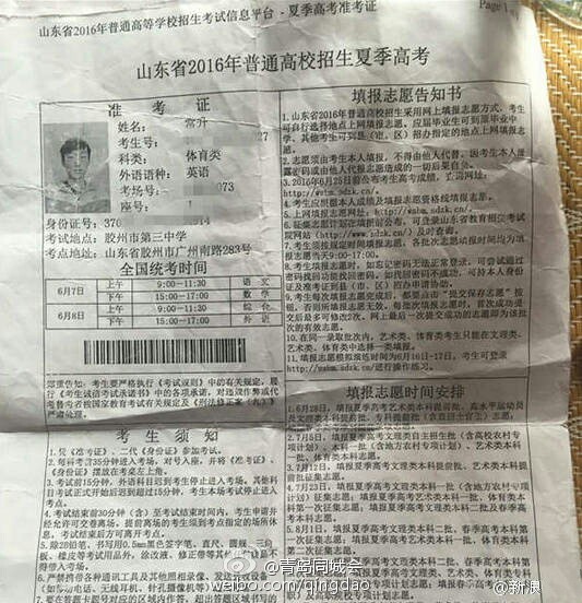 “如果不是他收到了通知書(shū),我永遠(yuǎn)也不會(huì)知道這個(gè)秘密?!背I嬖V記者,他口中的“他”是室友兼摯友郭某。常升和郭某都是體育特長(zhǎng)生,兩人今年高考成績(jī)相仿,在填報(bào)志愿的當(dāng)天,先后用體育老師遲老師的電腦填報(bào)了志愿,均為陜西師范大學(xué)的免費(fèi)師范生。但是錄取通知一下,常升傻了眼,自己并沒(méi)有被錄取,但是比自己分?jǐn)?shù)更低的郭某卻收到了錄取通知書(shū),而且陜西師范大學(xué)在山東招收的免費(fèi)師范生還沒(méi)有招滿,種種情況讓常升十分不理解。圖為常升高考相關(guān)信息。 |