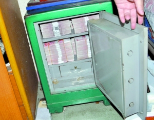 警方在東莞破獲一宗地下錢莊案時,從一個保險箱中繳獲滿滿一箱涉案現金。