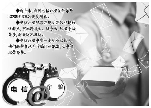 □ 本報(bào)記者 劉子陽 文/圖 冒充公檢法工作人員、偽裝客服號碼發(fā)送短信、謊稱發(fā)放教育補(bǔ)貼……近年來,我國電信詐騙案件每年以20%至30%的速度增長,已成為社會公害,給人民群眾造成巨大經(jīng)濟(jì)損失。 最高人民法院近日召開新聞通氣會,通報(bào)了懲治電信詐騙犯罪典型案例,北京市高級人民法院副院長安鳳德、福建省高級人民法院副院長謝開紅分別介紹了北京、福建兩地審理電信詐騙犯罪案件的有關(guān)情況。 冒充公安10天騙400余萬元 據(jù)安鳳德介紹,電信詐騙犯罪呈現(xiàn)明顯的非接觸性特點(diǎn),空間跨度大、鏈條長,行騙手法繁多、群眾防不勝防,特別是今年8月以來,山東、廣東連續(xù)發(fā)生學(xué)生被詐騙后死亡的案件,影響極其惡劣。北京法院突出打擊重點(diǎn),依法從嚴(yán)懲處電信網(wǎng)絡(luò)詐騙團(tuán)伙的首要分子、骨干、累犯、慣犯、職業(yè)犯。 據(jù)統(tǒng)計(jì),2013年至今,北京法院共審結(jié)各類電信詐騙相關(guān)案件59件,判處有期徒刑以上刑罰405人。 2011年8月至9月間,被告人吉秀燕、李開琴等犯罪嫌疑人先后出境前往印度尼西亞,于2011年9月16日至9月26日間,在印度尼西亞雅加達(dá)市一別墅內(nèi),分別作為一線、二線、三線人員,冒充中華人民共和國公安機(jī)關(guān)工作人員身份,通過電信技術(shù)手段,采用向中國居民撥打電話的方法,向被害人虛構(gòu)個(gè)人信息泄露、涉嫌犯罪、資產(chǎn)需要保全等事實(shí),詐騙48名被害人共計(jì)人民幣462萬余元。其中被告人陳冬冬、賴韓韓、莊敬意、林智強(qiáng)參與詐騙金額共計(jì)人民幣405萬余元,被告人楊劍參與詐騙金額共計(jì)人民幣303萬余元。14名被告人于2011年9月26日被抓獲。 北京市東城區(qū)人民法院經(jīng)審理認(rèn)為,被告人以非法占有為目的,共同通過電信技術(shù)手段,采取虛構(gòu)事實(shí)、隱瞞真相的方法,騙取他人錢財(cái),且數(shù)額特別巨大,14名被告人的行為侵犯了公民的財(cái)產(chǎn)權(quán)利,均已構(gòu)成詐騙罪,依法應(yīng)予刑罰處罰。其中,被告人吉秀燕、李開琴共同負(fù)責(zé)對別墅內(nèi)人員的詐騙活動(dòng)進(jìn)行管理,且作為三線話務(wù)員直接騙取被害人錢款,二被告人在共同犯罪中起主要作用,屬于主犯。依照刑法有關(guān)規(guī)定,以詐騙罪判處14名被告人5年至12年不等的有期徒刑,并處相應(yīng)數(shù)額的罰金。 在電信詐騙案件中,詐騙金額、被害人人數(shù)、詐騙次數(shù)、詐騙手段、情節(jié)、危害后果等因素都會影響被告人的量刑。本案中,14名被告人在境外集中居住于別墅內(nèi),共同參與電信詐騙活動(dòng),且分工明確,有一定的組織性,已形成固定的犯罪團(tuán)伙。每名被告人參與的詐騙金額均在百萬元以上,且案發(fā)后贓款并未追回,給48名被害人造成巨大的經(jīng)濟(jì)損失,故東城法院最終對14名被告人全部判處了有期徒刑5年以上的重刑,兩名主犯被判處12年有期徒刑,對于電信詐騙犯罪案件形成極大的震懾。 斬?cái)嚯娦啪W(wǎng)絡(luò)詐騙犯罪鏈條 電信詐騙中有一類職業(yè)取款人,他們輾轉(zhuǎn)各地為詐騙團(tuán)伙取款,從中提取勞務(wù)費(fèi)。 2015年3月至4月,被告人陳觀湖、陳禮華從陳某華、張某鑫處拿來數(shù)十張銀行卡,相互配合,共同保管、使用涉案銀行卡,在福建福州、廈門、泉州等地將27名被害人因受騙匯入的錢款取出,收取相應(yīng)提成后,匯入詐騙人員提供的賬戶,涉案金額人民幣637721元。2015年3月2日至7日,被告人陳黃華伙同陳某華、張某鑫,明知是被害人因受騙匯入的錢款,仍駕駛車輛前往江西等地多次取款,涉案金額共計(jì)人民幣108888元。 法院認(rèn)為,被告人明知他人進(jìn)行電信詐騙,仍結(jié)伙對涉案詐騙款項(xiàng)實(shí)施取款并轉(zhuǎn)移,致使被害人被騙款項(xiàng)無法追回,其行為已構(gòu)成詐騙罪的共同犯罪,詐騙數(shù)額應(yīng)當(dāng)按照共同取款數(shù)額計(jì)算。3名被告人所實(shí)施的提取并轉(zhuǎn)移被騙款項(xiàng)的行為,是詐騙集團(tuán)成功控制詐騙款的最后一個(gè)環(huán)節(jié),3人在整個(gè)電信詐騙的共同犯罪中僅有分工不同,并無主次之分。據(jù)此,依法以詐騙罪對被告人陳觀湖判處有期徒刑13年,并處罰金人民幣10萬元;對被告人陳禮華判處有期徒刑13年,并處罰金人民幣10萬元;對被告人陳黃華判處有期徒刑4年3個(gè)月,并處罰金人民幣兩萬元。 近年來,隨著網(wǎng)絡(luò)電信詐騙日益猖獗,此類犯罪行為形成的產(chǎn)業(yè)鏈也呈現(xiàn)出專業(yè)化、跨區(qū)域性、集團(tuán)化趨勢,涵蓋購買設(shè)備、撥打電話、群發(fā)短信、假冒身份虛構(gòu)事實(shí)、騙取錢款、轉(zhuǎn)賬取款等行為過程。為了逃避偵查,電信詐騙犯罪中的取款、轉(zhuǎn)移贓款等行為往往由犯罪行為實(shí)施地以外的多個(gè)地方的專門取款人完成。本案中的3名被告人,雖未參與前一階段對被害人的具體詐騙行為,但其明知所取款項(xiàng)是詐騙犯罪所得,而與前階段詐騙犯罪人員相互配合,輾轉(zhuǎn)各地為詐騙犯罪團(tuán)伙轉(zhuǎn)取款,其行為是整個(gè)騙局得逞、詐騙分子獲得錢款的重要環(huán)節(jié),應(yīng)以詐騙犯罪共犯定罪量刑。 謝開紅說:“法院既要嚴(yán)厲打擊電信網(wǎng)絡(luò)詐騙犯罪