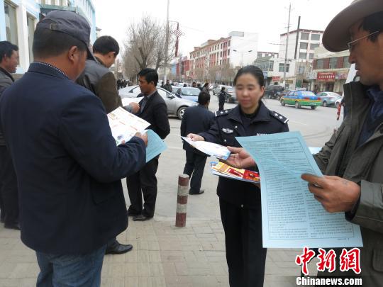 圖為緝毒“女將”在街頭宣傳禁毒知識。 鐘欣 攝