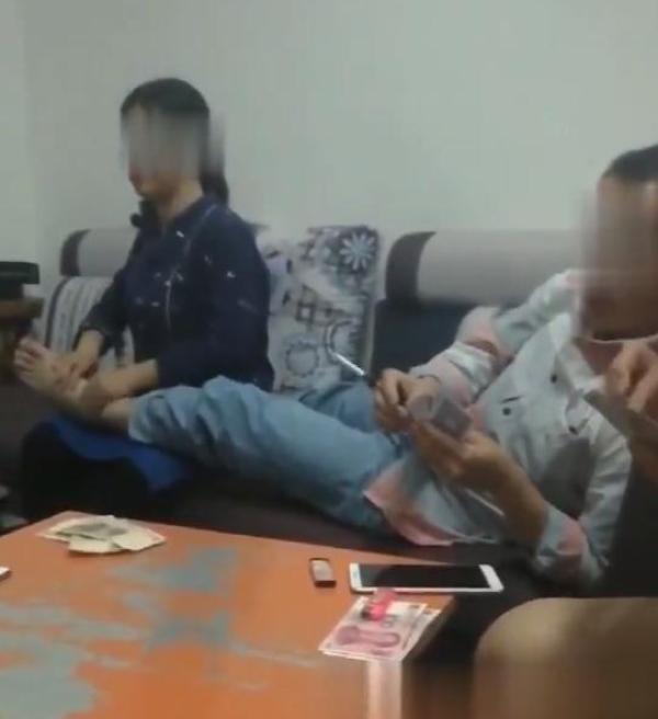 網(wǎng)傳視頻中,一名短發(fā)男子半躺在沙發(fā)上打牌,牌桌上擺放有不少現(xiàn)金。男子一條腿搭在旁邊女子的大腿上,女子正用雙手替男子按摩、揉搓腳部。舉報(bào)者稱視頻中的短發(fā)男子是廣西河池市宜州區(qū)龍頭鄉(xiāng)黨委書記“韋東?!?,幫其按摩腳部的女子叫“王娟”,系龍頭鄉(xiāng)副鄉(xiāng)長。