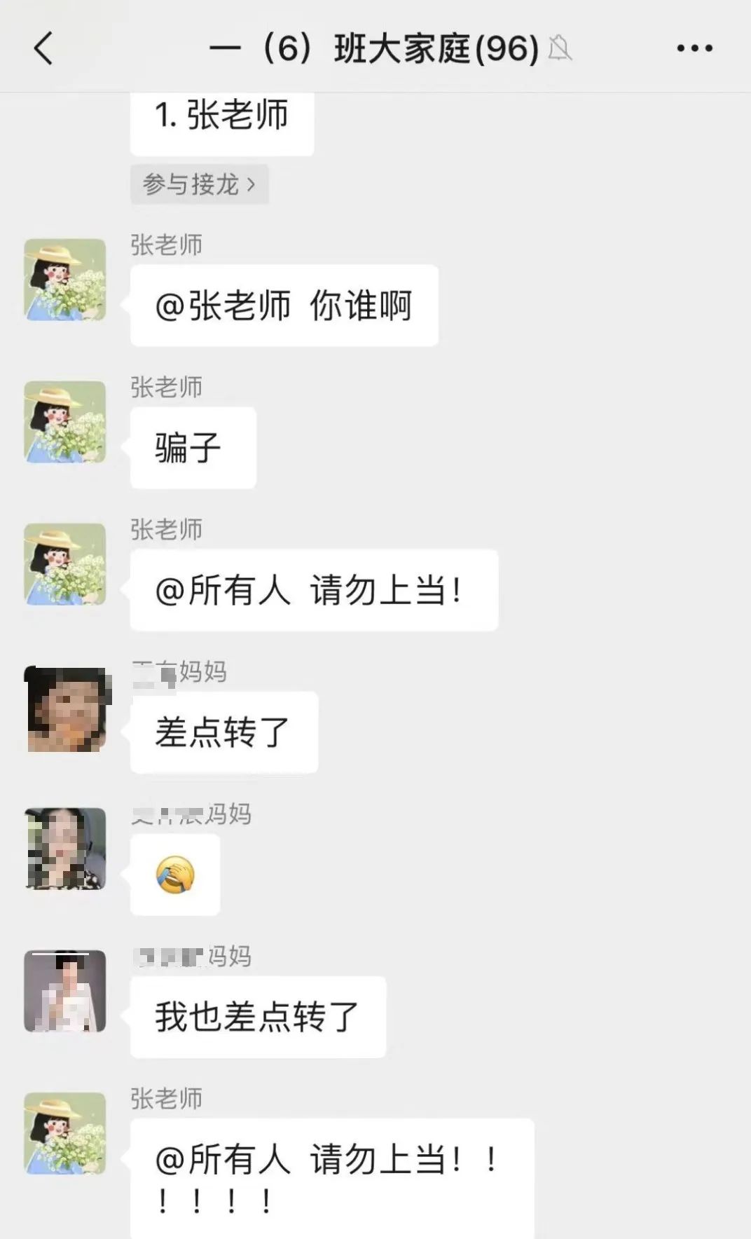 騙子通過盜取或克隆老師、家長的微信、QQ等賬號,混進(jìn)家長群,利用家長對老師的信任,假借老師之名,以需要繳納服裝、教材、資料等費(fèi)用為由實(shí)施詐騙。