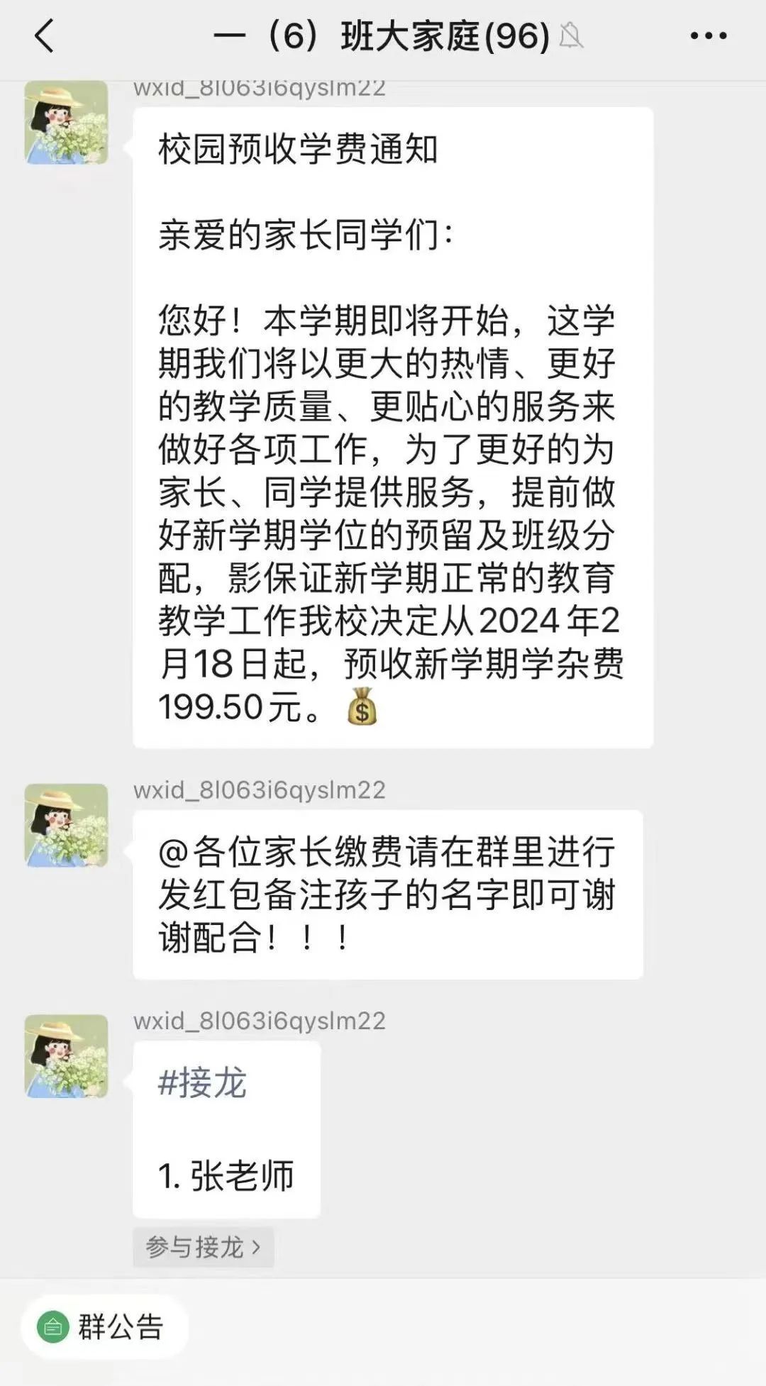在班級群內(nèi)發(fā)送收款接龍