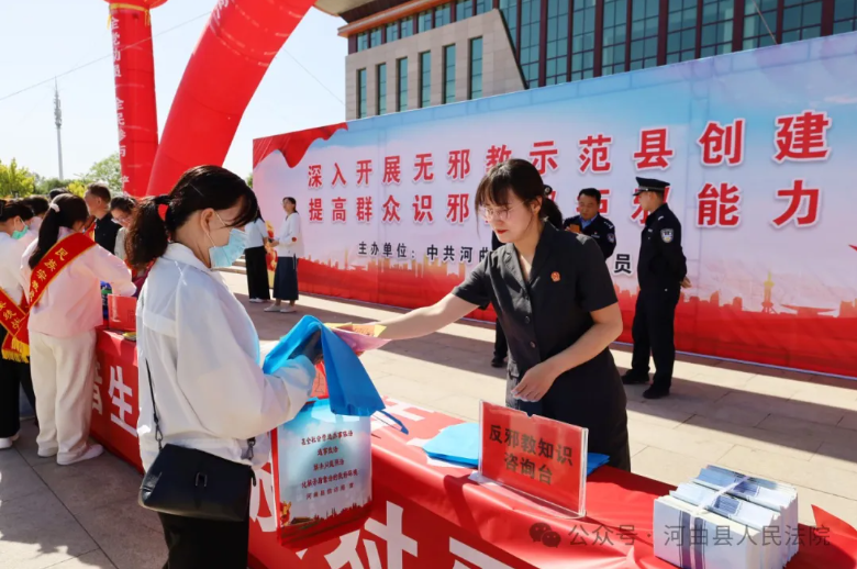 為構(gòu)建和諧平安的社會(huì)環(huán)境,加強(qiáng)公眾反邪教意識(shí),5月13日上午,河曲法院刑事審判庭組織干警前往臨隩公園參加河曲縣2024年“反邪拒邪”宣傳簽名活動(dòng)。