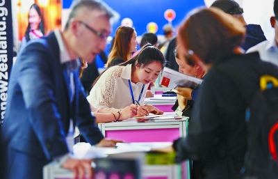 新西蘭參展團(tuán)共有25家教育機(jī)構(gòu),涵蓋大、中、小學(xué)。新西蘭對國際學(xué)生的照顧及保護(hù)體系較為完善,受到不少已成家年輕人的追捧,展臺(tái)前圍了不少人。在新西蘭學(xué)習(xí)的國際博士生,除了所支付的學(xué)費(fèi)與新西蘭本土博士生相同外,國際博士生配偶也可在新西蘭工作,其子女上中小學(xué)與當(dāng)?shù)貙W(xué)生同等學(xué)費(fèi)。新西蘭奧克蘭理工大學(xué)招生工作人員透露,這意味著,博士生子女在當(dāng)?shù)刈x公立學(xué)??梢悦赓M(fèi),碩士研究生也可享受這樣的待遇。新西蘭也是目前少有的在小學(xué)階段即可接受國際學(xué)生的國家。在三元橋一家外企工作的郎先生帶著3歲的女兒過來看展,他告訴記者,“在北京想要讀好學(xué)校不容易,如果家長去讀一個(gè)博士,孩子也能跟著過去上小學(xué),這倒是個(gè)挺好的計(jì)劃?!?/p>