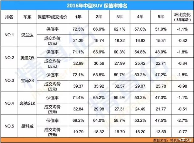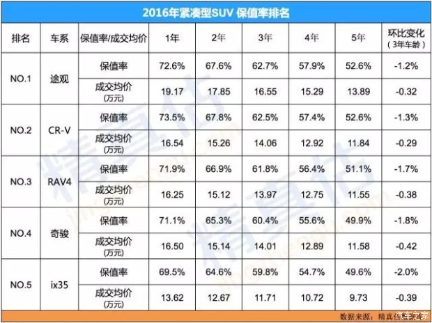 中型SUV以真7座開始作為參考指標(biāo),保值率出現(xiàn)一定的影響,這一車型保值率比較中,2017年將增加大量的有力競爭對手,保值率排名會有明顯的變化,如大眾途觀L、本田冠道、新寶馬X1以及自主品牌的旗艦SUV車型等。