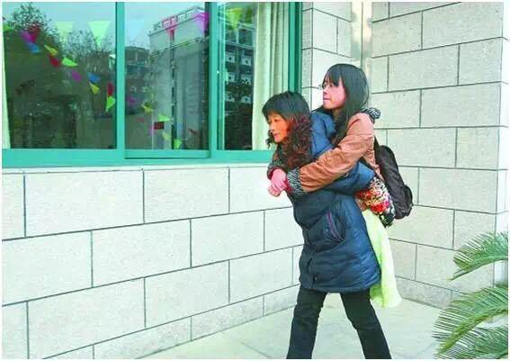 6歲那年,一場(chǎng)車禍奪走了葉沈俏的雙腿。依靠著母親的背和輪椅,她從鄉(xiāng)村小學(xué)一路考進(jìn)浙江大學(xué)。村里有人私下議論:“這孩子這輩子完了!”葉沈俏的父母卻不這么認(rèn)為?!拔覌寢層幸粋€(gè)非常明確的信念:我的女兒一定要受教育,一定要讀書。”在母親的陪護(hù)下,葉沈俏從村里的小學(xué)讀起,開始了和同齡人一樣的學(xué)習(xí)節(jié)奏。圖為葉沈俏的媽媽背著她去上課。