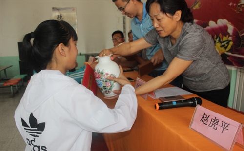 北義井鄉(xiāng)政府付俊敏鄉(xiāng)長在頒獎儀式上講話中勉勵學(xué)生們要學(xué)好文化課,寫好中國字,做好中國人。希望在今后的校園生活中,書法繪畫將成為每個學(xué)生的必修課,成為一生興趣和愛好,成為師生共同努力的目標(biāo)。(馬卓寧)