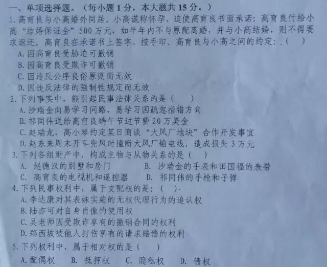 昨天,浙江財(cái)經(jīng)大學(xué)東方學(xué)院法學(xué)專業(yè)的學(xué)生就碰上了“萬一”——《民法總論》的期末考試試卷,竟通篇引用《人民的名義》?。?!
