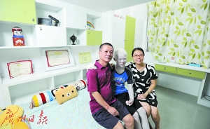 孫開俊和父母在新房間合影,身后是他的各種獎(jiǎng)狀。