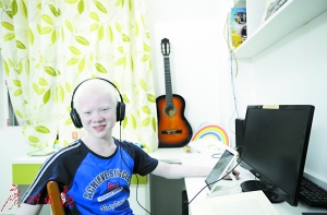 挑戰(zhàn)也并存,低年級的孩子還不知輕重,有時(shí)難免會(huì)對開俊造成磕碰。為了保障開俊的安全,體育課和午休時(shí)開俊都要回家,爸爸辭了職專職來接送照顧。“我們明白他始終跟其他孩子不同,只能增強(qiáng)他的心理承受能力”,孫爸爸說,有些調(diào)皮的同學(xué)會(huì)給開俊起“白骨精”“白發(fā)魔女”等“花名”,他就提前做好引導(dǎo),“我也叫他白頭翁,希望他能提前適應(yīng),內(nèi)心更強(qiáng)大一些”。