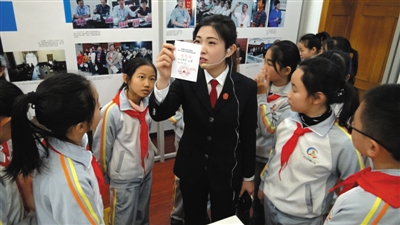 東交民巷小學(xué)學(xué)生參觀中國法院博物館,了解法律知識。