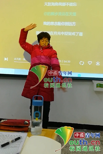 圖為張雪梅在教室跳舞。中國(guó)青年網(wǎng)通訊員 田麗楠 攝