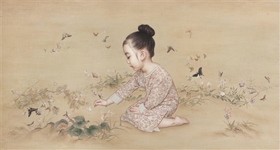 近日,青年油畫家萬(wàn)里成了“網(wǎng)紅”,他家有兩個(gè)女兒,一個(gè)5歲叫朵朵,一個(gè)3歲叫萌萌。3年前開(kāi)始,他每天畫女兒。妻子給女兒穿上中式服裝,盤上傳統(tǒng)發(fā)髻,萬(wàn)里把女兒畫進(jìn)園林竹石或者山水間,與草木魚蟲(chóng)相伴。
