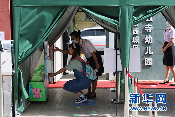 新華網(wǎng)北京6月4日電 6月3日,為做好兒童返園準(zhǔn)備,北京市西城區(qū)三教寺幼兒園進(jìn)行了開(kāi)園模擬演練。此次演練由幼兒園老師扮演家長(zhǎng)和孩子,旨在讓老師知曉幼兒園防護(hù)措施且有的放矢地去開(kāi)展活動(dòng),并通過(guò)線上的方式讓孩子們知道如何進(jìn)行自我保護(hù)。