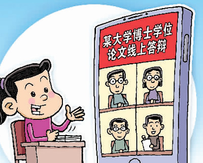 “線上答辯前,要調(diào)整好狀態(tài)、調(diào)試好設(shè)備,確保答辯過程的順暢?!薄巴ㄟ^屏幕答辯,體會(huì)到了數(shù)字化時(shí)代網(wǎng)絡(luò)的便捷。”為解決防疫期間畢業(yè)生返校難的問題,許多高校推出“云答辯”。