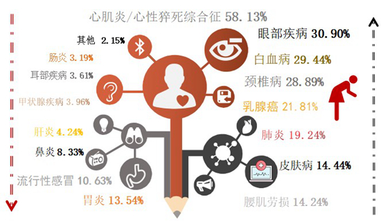 大學(xué)生最擔(dān)心罹患的疾病類(lèi)型分布(%)。廉思課題組供圖
