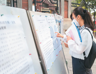 二○二二年七月七日,二○二二年上海市普通高等學(xué)校招生統(tǒng)一文化考試開考,五萬多名考生奔赴考場。圖為上海格致中學(xué)考點(diǎn),考生查看考場信息。 王 初攝(人民視覺)