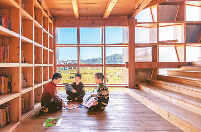 據(jù)介紹,坪坦書(shū)屋位于湖南省懷化市通道侗族自治縣坪坦鄉(xiāng)侗族村一所有400多名學(xué)童的小學(xué)庭院內(nèi),于2021年底啟用。這棟建筑物樓高3層,面積約180平方米,完全以木材建造。書(shū)屋繼承了傳統(tǒng)侗族建筑的特色,由兩個(gè)交錯(cuò)的螺旋樓梯組成,采用瓦片坡屋頂和榫卯相扣的柱梁木結(jié)構(gòu)系統(tǒng),既可讓孩子們閱讀,也可讓他們玩耍和探索。(陳然)