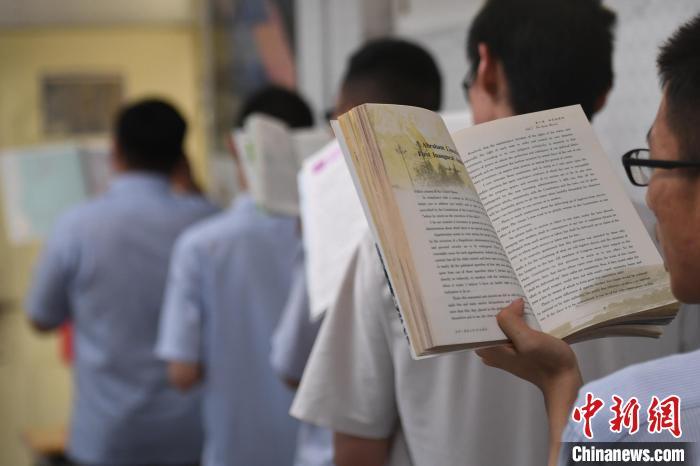 資料圖:教室外走廊里,老師們?yōu)榭忌鷤兇鹨山饣螅W(xué)生迎戰(zhàn)高考。 何蓬磊 攝