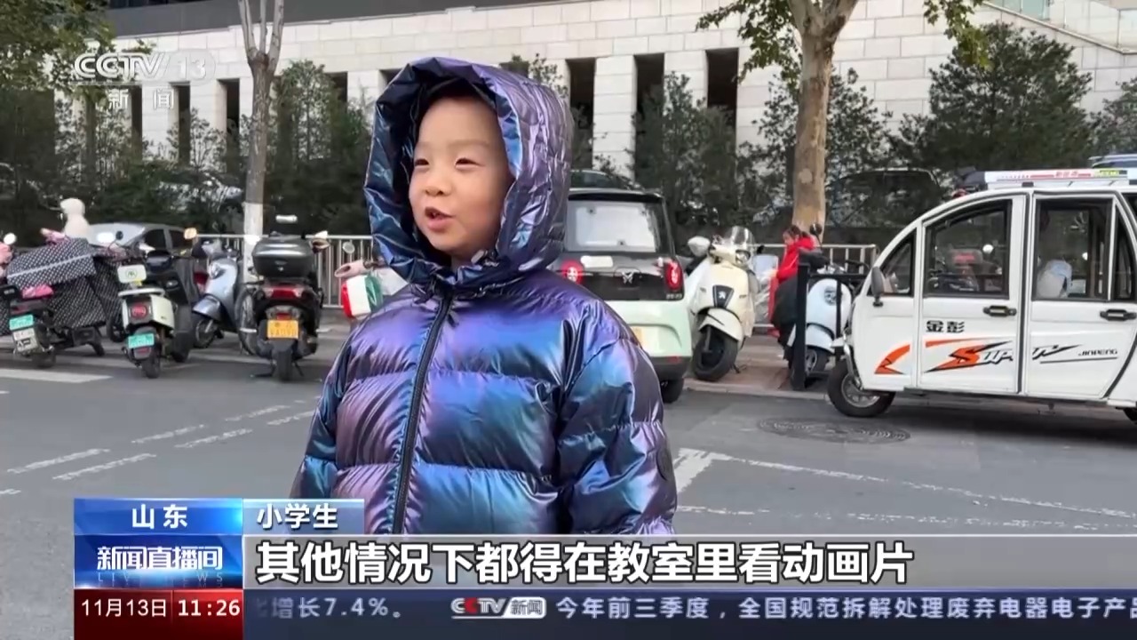 山東小學(xué)生:不會。老師不讓出來玩,因為有學(xué)生撞了好幾次了。除了上廁所、接水,其他情況下都得在教室里看動畫片。