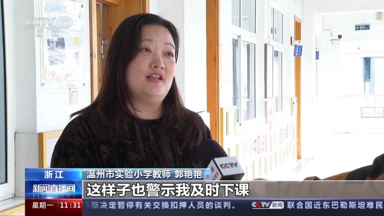 溫州市實驗小學(xué)教師 郭艷艷:這個鈴聲是挺大的,我要是繼續(xù)上課的話,孩子們也不能夠很清楚地聽到我的聲音,這樣也警示我及時下課。