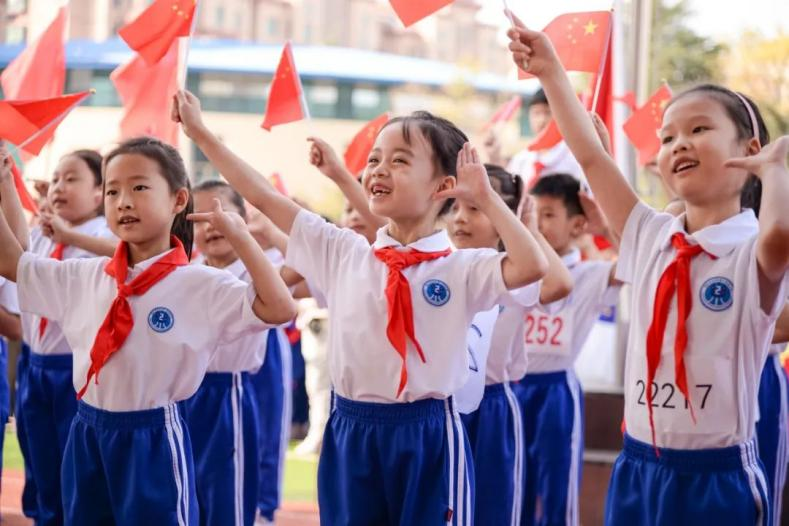 2023年10月12日,在山東省青島市城陽區(qū)第二實(shí)驗(yàn)小學(xué),學(xué)生們在秋季運(yùn)動會開幕式上進(jìn)行才藝展演。通訊員 張鷹 攝