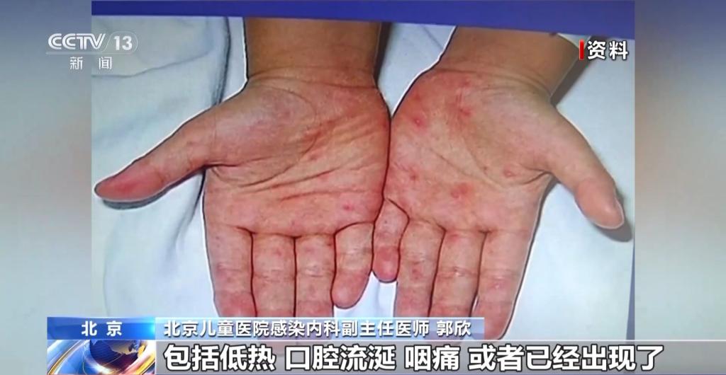 北京兒童醫(yī)院感染內(nèi)科副主任醫(yī)師 郭欣:通過一些蛛絲馬跡來早期發(fā)現(xiàn),可以去仔細(xì)觀察孩子的口腔、皮膚的黏膜,通常典型的癥狀就是累及手部、腳部,還有孩子的小屁屁上,可能會出現(xiàn)小紅點(diǎn)。在潛伏期3—5天之后,孩子可能早期會出現(xiàn)一些包括低熱、口腔流涎、咽痛,或者已經(jīng)出現(xiàn)了手足或者臀部的這種皮疹,這樣如果出現(xiàn)這樣的癥狀,家長就一定要注意孩子可能罹患了手足口病。