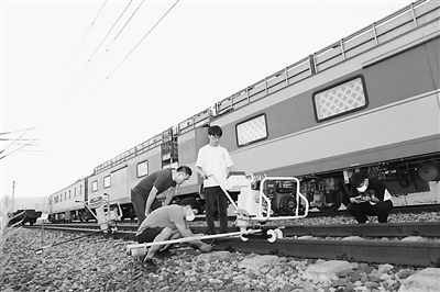 重慶電子工程職業(yè)學(xué)院師生正在使用軌枕螺栓高精度智能檢測與檢修設(shè)備進(jìn)行現(xiàn)場勘測。受訪者供圖