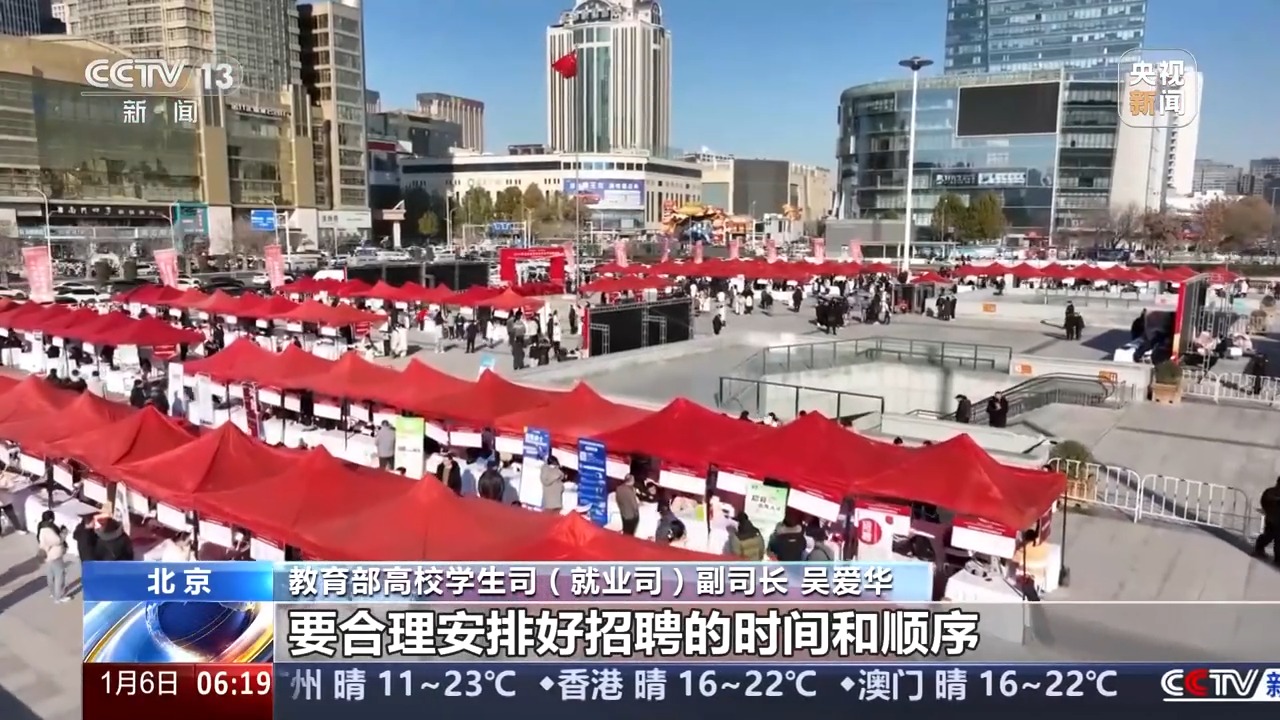 教育部高校學(xué)生司(就業(yè)司)副司長(zhǎng) 吳愛(ài)華:大學(xué)生比較關(guān)心的首先是政策性崗位,要合理安排好招聘的時(shí)間和順序,公務(wù)員、事業(yè)單位、國(guó)有企業(yè),還有軍隊(duì)的征兵入伍、基層項(xiàng)目等,政策性的崗位能招盡招,能早招,盡量早一點(diǎn)招,這樣給畢業(yè)生到市場(chǎng)上的求職留出足夠的時(shí)間。