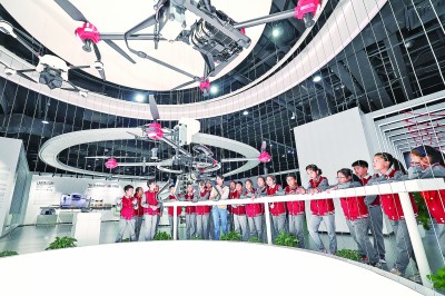 學(xué)生們在浙江省湖州市德清縣地理信息科技館學(xué)習(xí)無人機地理測繪知識。新華社發(fā)