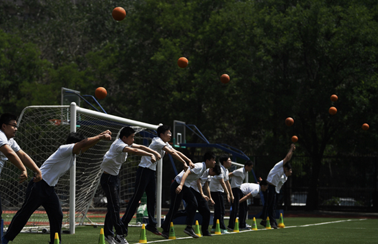 5月28日,北京,第十八中學(xué)學(xué)生備考中考體育考試。視覺中國供圖