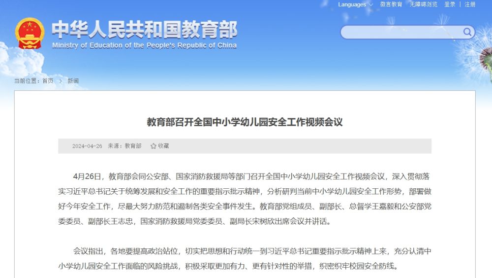 4月26日,教育部會(huì)同公安部、國(guó)家消防救援局等部門召開全國(guó)中小學(xué)幼兒園安全工作視頻會(huì)議,深入貫徹落實(shí)習(xí)近平總書記關(guān)于統(tǒng)籌發(fā)展和安全工作的重要指示批示精神,分析研判當(dāng)前中小學(xué)幼兒園安全工作形勢(shì),部署做好今年安全工作,盡最大努力防范和遏制各類安全事件發(fā)生。教育部黨組成員、副部長(zhǎng)、總督學(xué)王嘉毅和公安部黨委委員、副部長(zhǎng)王志忠,國(guó)家消防救援局黨委委員、副局長(zhǎng)宋樹欣出席會(huì)議并講話。