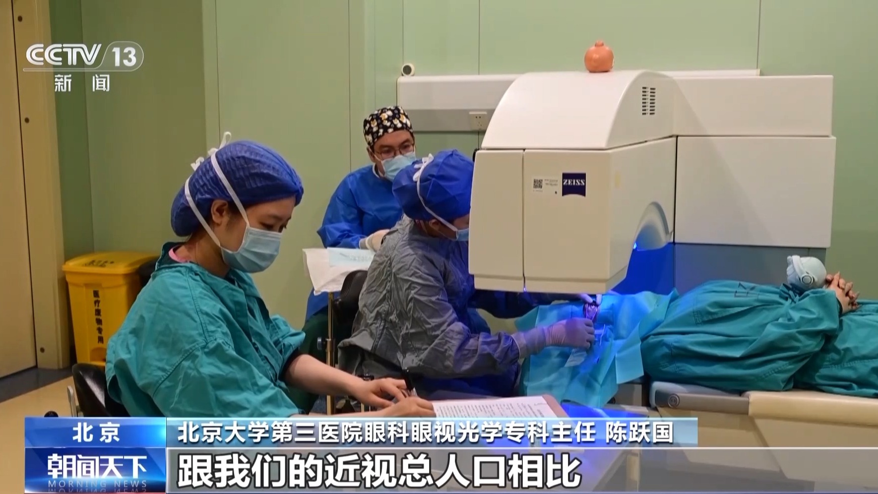北京大學(xué)第三醫(yī)院眼科眼視光學(xué)??浦魅?陳躍國:每年近視矯正手術(shù)全世界大概是500萬例到600萬例,其中20%我們國內(nèi)應(yīng)該在150萬臺以上,跟我們的近視總?cè)丝谙啾绕鋵?shí)還是微乎其微的,不到1%。做手術(shù)并不是目前進(jìn)行近視矯正的一個(gè)主流,主流還是戴鏡。