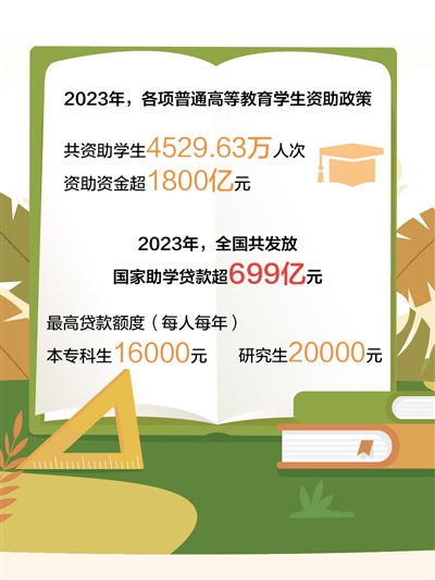 《2023年中國(guó)學(xué)生資助發(fā)展報(bào)告》顯示,2023年,政府、高校及社會(huì)的各項(xiàng)普通高等教育學(xué)生資助政策共資助學(xué)生4529.63萬(wàn)人次,資助資金1854.38億元。