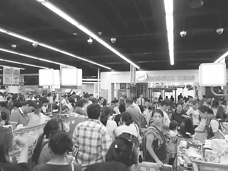 圖片說明: 烏蘭巴托8月初開業(yè)的一家韓國商場收銀臺前人滿為患,絲毫沒有危機(jī)氛圍。楊濤攝